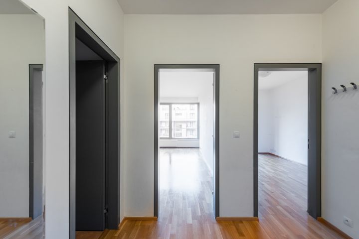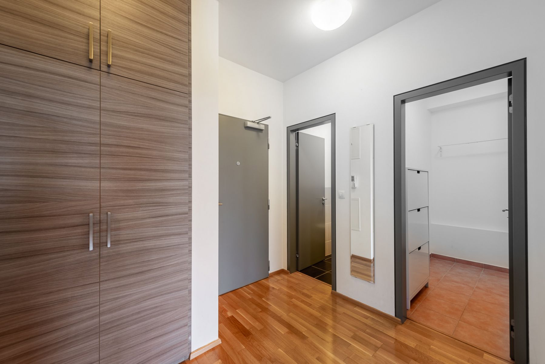 Nabízíme vám k pronájmu byt 2+KK s balkonem, který se nachází v pátém nadzemním podlaží sedmipodlažní novostavby Rezidence Korunní v pražských Vinohradech. Tento byt o výměře 57 m², se skládá z chodby, obývacího pokoje spojeného s kuchyňským koutem, ložnice, koupelny s vanou, samostatného WC a komory. K bytu náleží také balkon, který je přístupný z obývacího pokoje i ložnice. Všechna okna v bytě vč. balkonu jsou orientována na východ do klidného dvora Rezidence Korunní. Byt je vybaven kuchyňskou linkou se sklo-keramickou varnou deskou, el. troubou, myčkou a lednicí. V koupelně je k dispozici pračka. V chodbě se nachází prostorná vestavná skříň. Na podlahách jsou dubové parkety (obývací pokoj, ložnice a chodba) a dlažba (koupelna, WC a komora). Byt je dále vybaven videotelefonem, bezpečnostními dveřmi a vnějšími žaluziemi. Dům má recepci fungující 24/7. K bytu je možno pronajmout i jedno garážové stání za 3.500,–Kč. Poplatky za domovní služby a energie cca 5.300Kč/ měs. + el. energie (převod na nájemce). Byt je k nastěhování od 10. 5. 2026. Pro více informací volejte makléře.